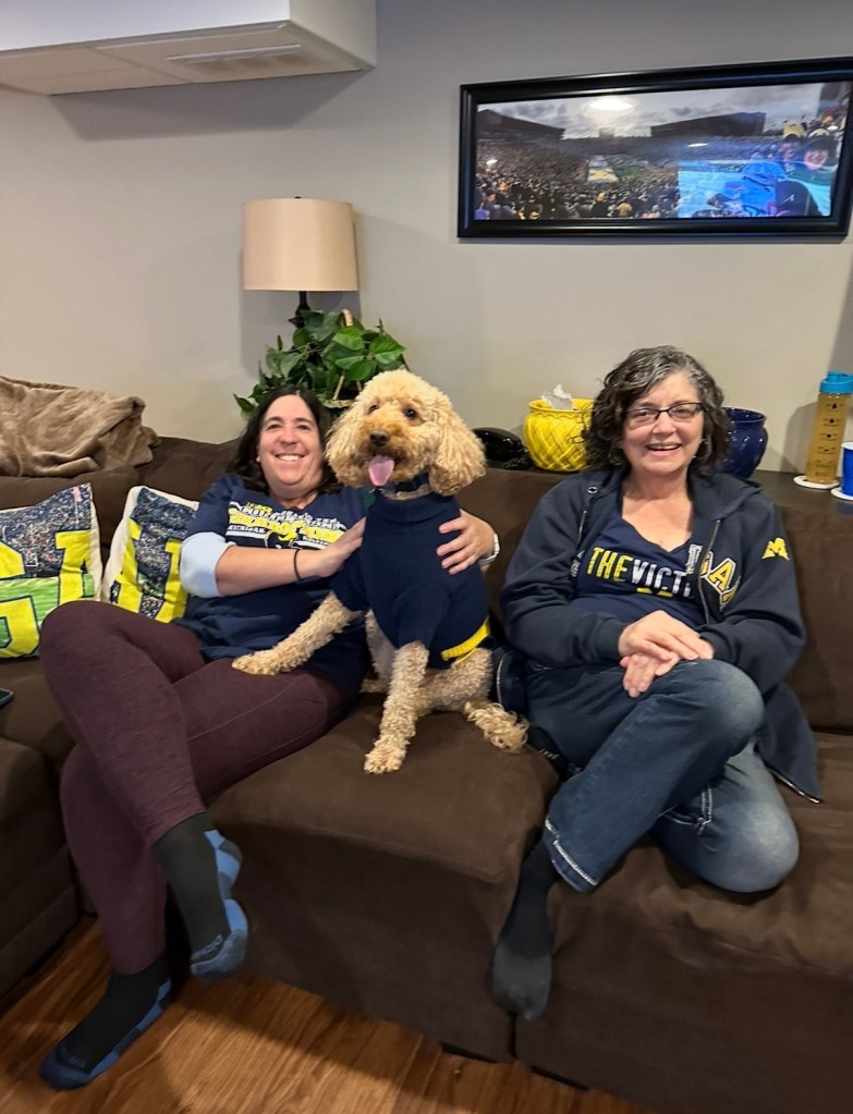 She has listened to my rambling thoughts, my worries, my hopes. She licks my tears when I cry and somehow always knows when I need her most. She places her paw in mine like she’s saying, I’m here. And she gives me high-fives every time Michigan scores — which, of course, she does proudly in her own Michigan sweater or jersey while we watch games together in my Diva Den.