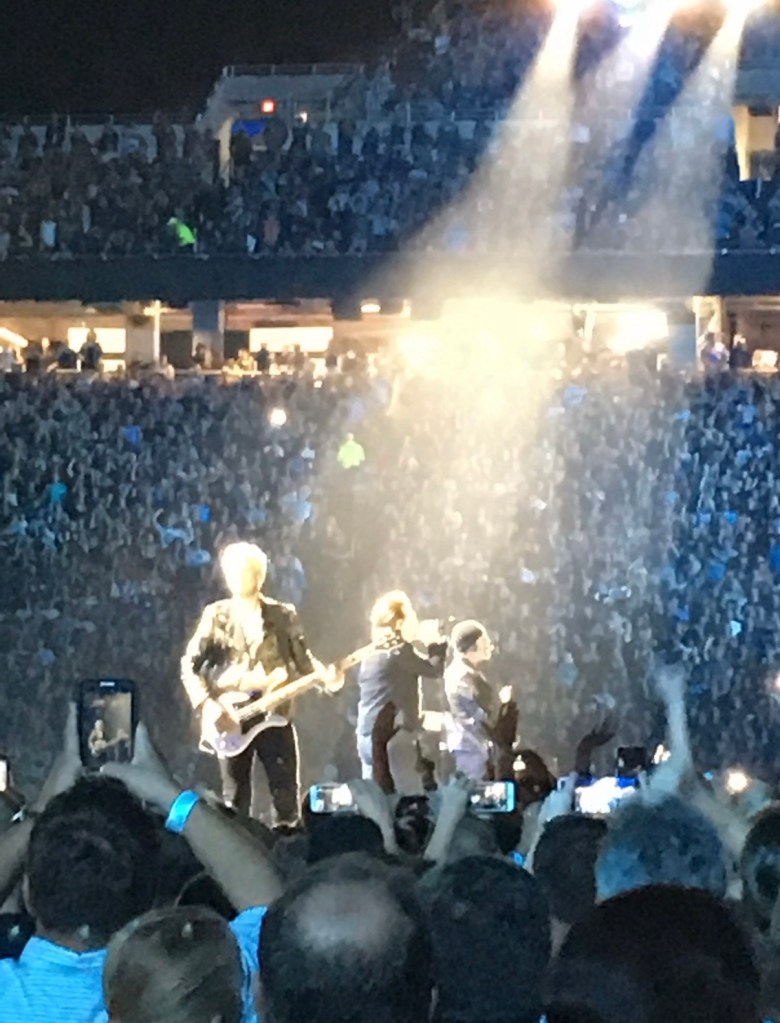 And then there was the time J was visiting Detroit and managed to get us into a private U2 concert backstage at Ford Field before the full show. It was limited to twenty radio programmers and their plus-ones. I was the very lucky plus-one. I stood about three feet away from Bono, Adam Clayton, and The Edge — no crowd, no distance, just music in its purest form. (Unfortunately no photos were allowed backstage). It remains one of my favorite experiences of all time, not because it was exclusive, but because it felt surreal and deeply personal. I’m still not over it. Probably never will be.