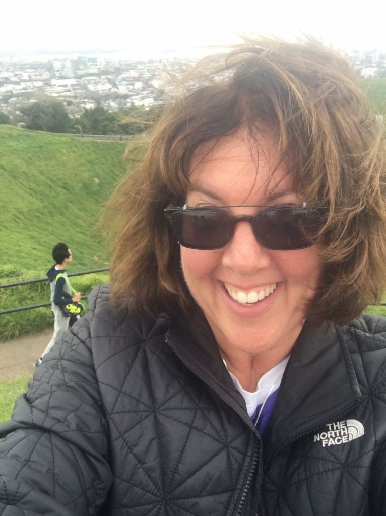 This photo was taken at the top of Mount Eden in Auckland, standing on the rim of a volcanic crater with incredible views of the city. It’s one of those places where you want to stop, take it all in, and capture the moment with a selfie.