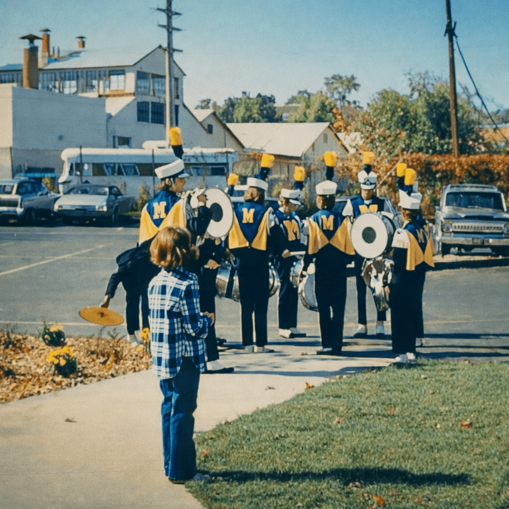 Before the game, we started at Revelli Hall, where the Michigan Marching Band was practicing. I watched in awe as the band director inspected every uniform, every plume just so. Then we marched together toward the stadium, singing “It’s Great to Be a Michigan Wolverine” at the top of our lungs. I had maize-and-blue pom-poms in my hands and goosebumps on my arms.