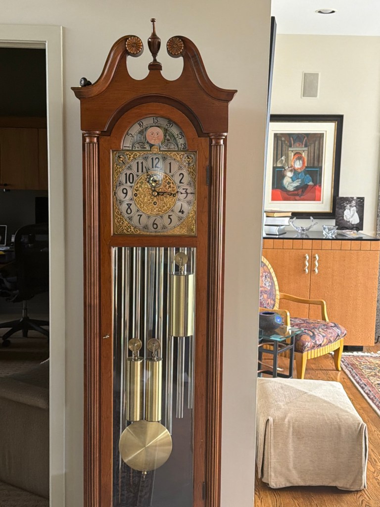 One of the things she left behind was her grandfather clock. After she died, my cousins Lee and Jayne inherited it, and it now stands in the foyer of their home.
