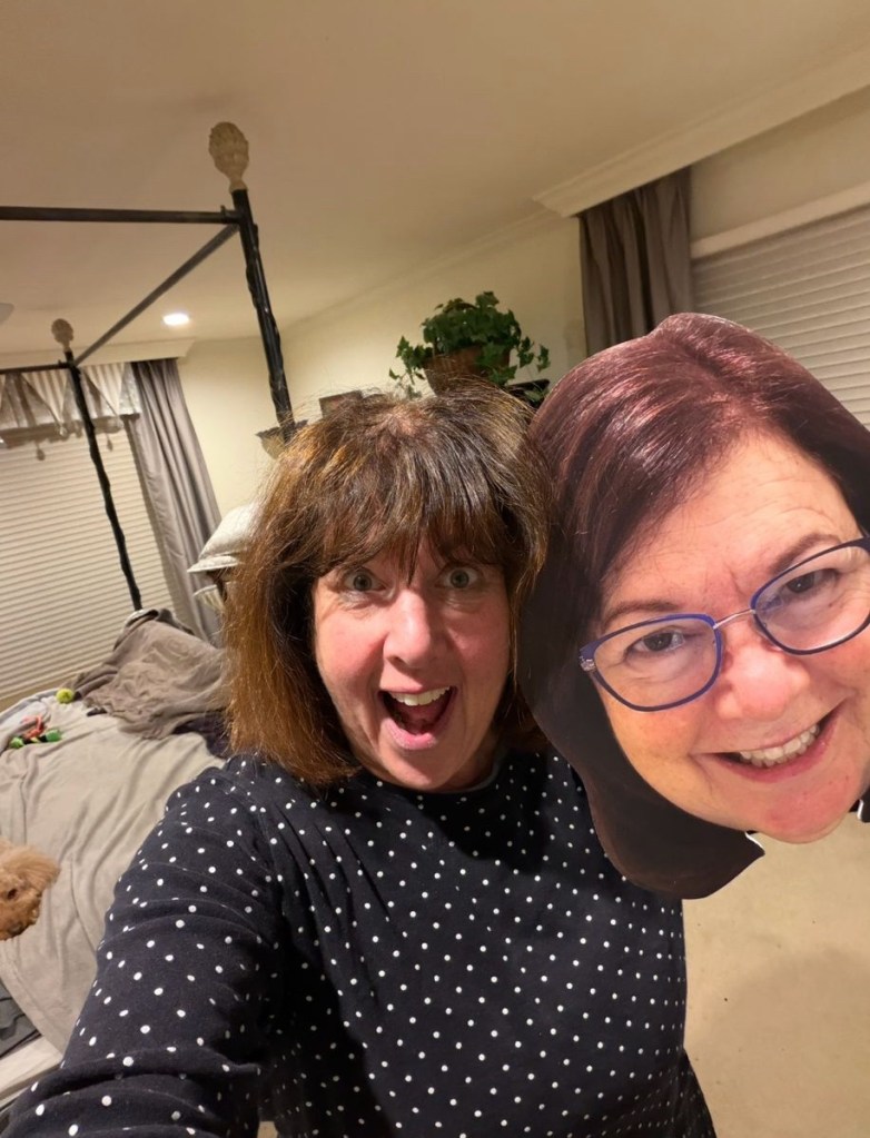 So naturally, she sent a giant Styrofoam head of herself so we can take her with us.